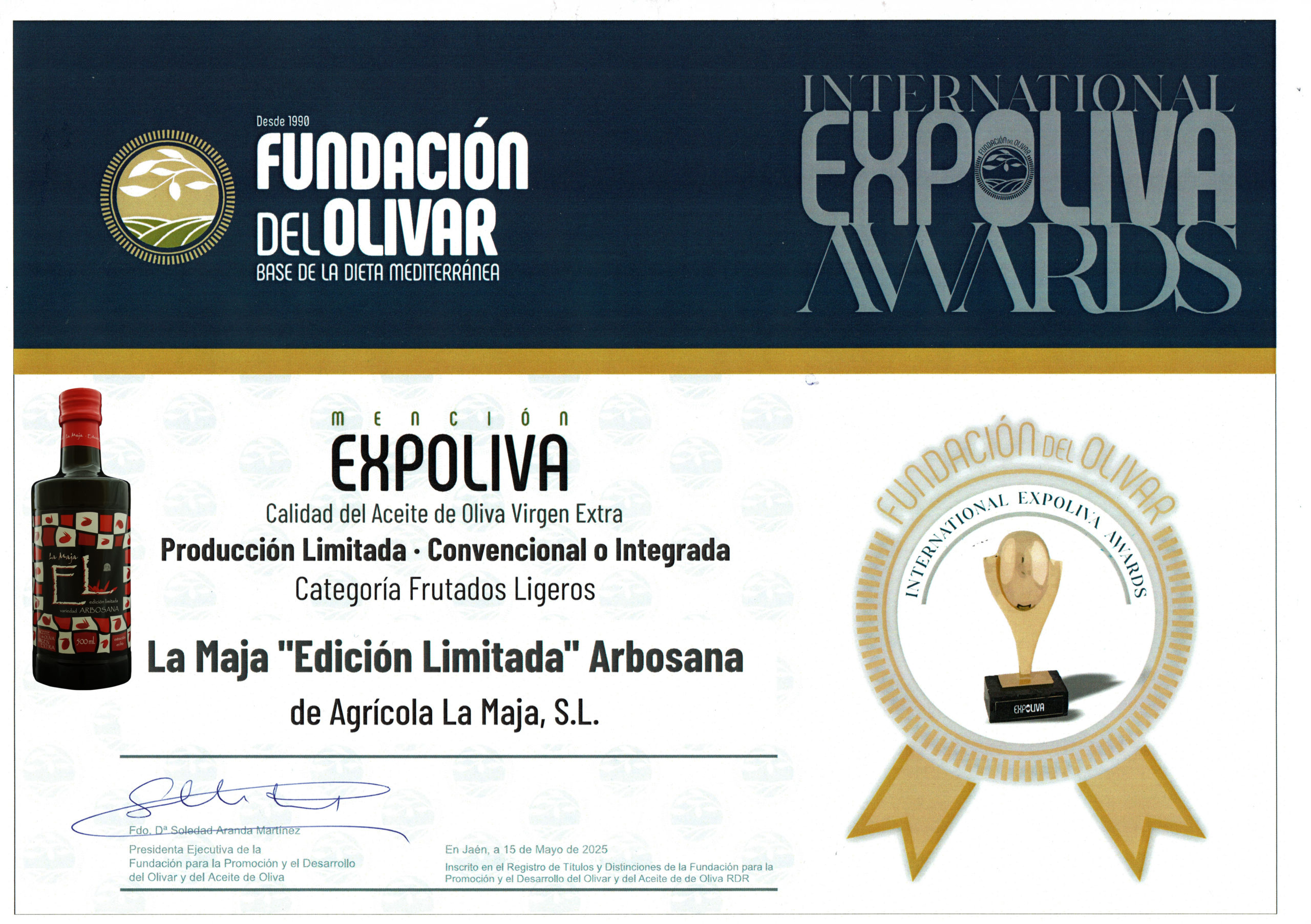 Aceites La Maja es una empresa familiar fundada en 1997 y está especializada en el cultivo del olivo, la elaboración y comercialización de Aceite de Oliva Virgen Extra.